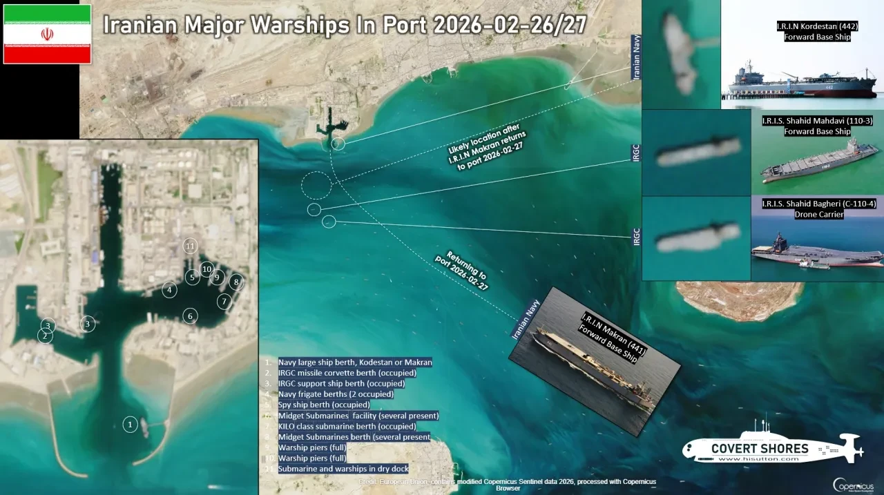 Размещение кораблей в ВМБ Бендер-Аббас 25.02.2026