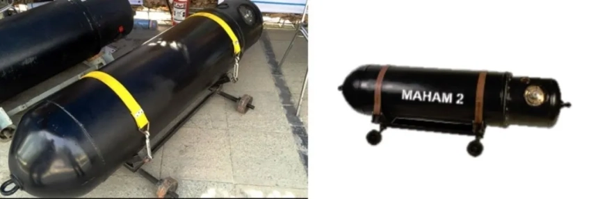 Для обеспечения деятельности боевых пловцов Иран имеет на вооружении транспортеры легководолазов, такие как двухместные «Аль-Сабехат 15» (Al Sabehat 15). А в 2020 году КСИР представил очередную новинку - большой подводный дрон с дизель-электрической ЭУ “Nazir-1”. Позднее демонстрировались и его усовершенствованные версии. Длина этого подводного беспилотника составляет около 9,1 м, диаметр - 1,8 м, глубина погружения 200 м, дальность плавания 270 миль, подводная автономность до 24 часов.