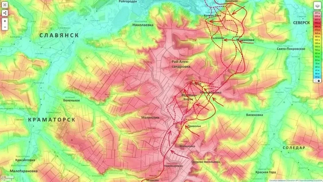 На Славянско-Краматорском направлении за последние сутки отмечено постепенное продвижение российских войск сразу на нескольких участках.