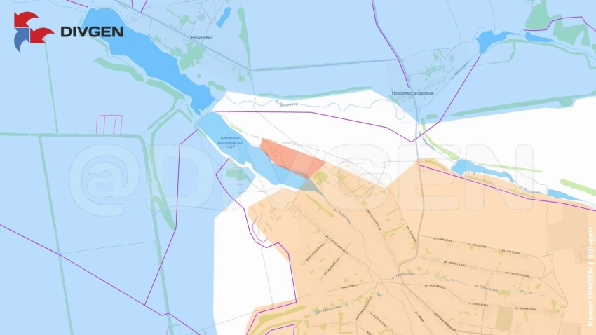 В Гришино российская пехота заняла новые позиции в северно части посёлка, продвигаясь в сторону Васильевки, видно на схемах мониторинга DIVGEN.