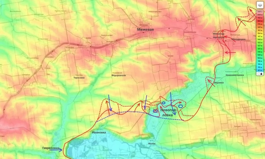 Сообщается о продвижении российских подразделений в сторону Новоданиловки, расположенной юго-восточнее Орехова. Также фиксируются действия в районе Малой Токмачки и расширение контроля в Белогорье.