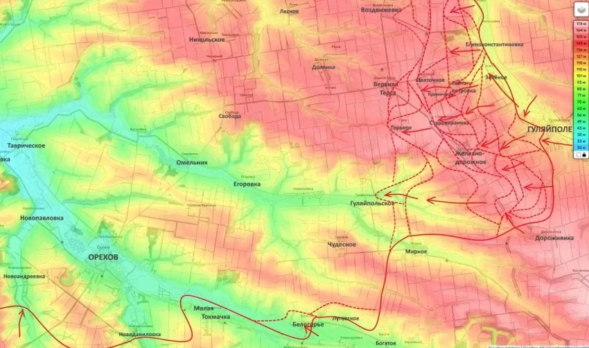 А вот у российский бойцов из группировки «Восток» темп куда бодрее. Бойцы 5-й и 35-й армий широким фронтом продавливают оборону к Гуляйпольскому. Накануне российские бойцы совершили рывок на данном участке фронта. Лесополосы одна за другой становятся нашими. И если движение по долине продолжится так же быстро, украинская Ореховская группировка рискует получить удар от российских войск прямо в глубокий тыл.