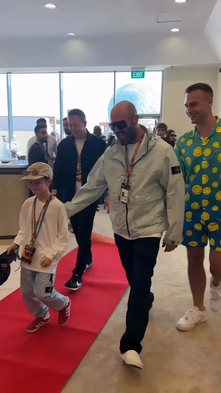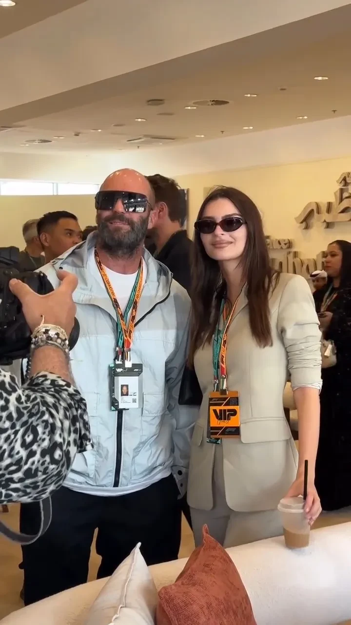 Джейсон Стэтхем с сыном, Баста с женой Еленой Вакуленко-Пинской, Оксана Самойлова и Эмили Ратаковски на Гран-при "Формулы-1"