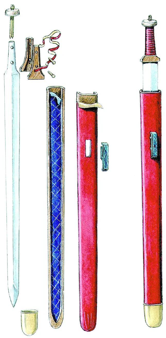 А вот никакого перекрестия сарматские мечи не имели. Ведь оно появилось лишь тогда, когда потребовалось защитить руку воина от удара о щит противника и вражеский клинок в условиях прямого противоборства. В случае же с сарматами такого противоборства просто не было: все их противники вооружались короткими мечами. Поэтому бой с ними происходил так: сарматы рубили пехотинцев и всадников, растерявших с ними в бою своих лошадей, нанося при этом удары сверху вниз…