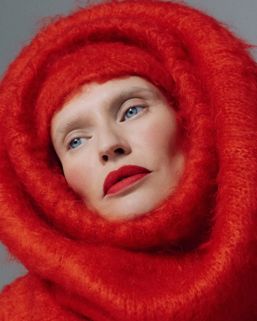 На новых снимках 40-летняя модель позирует в объективе фотографа Зои Натали Манеллы. Модель предстала в ярких образах и с осветлёнными бровями.