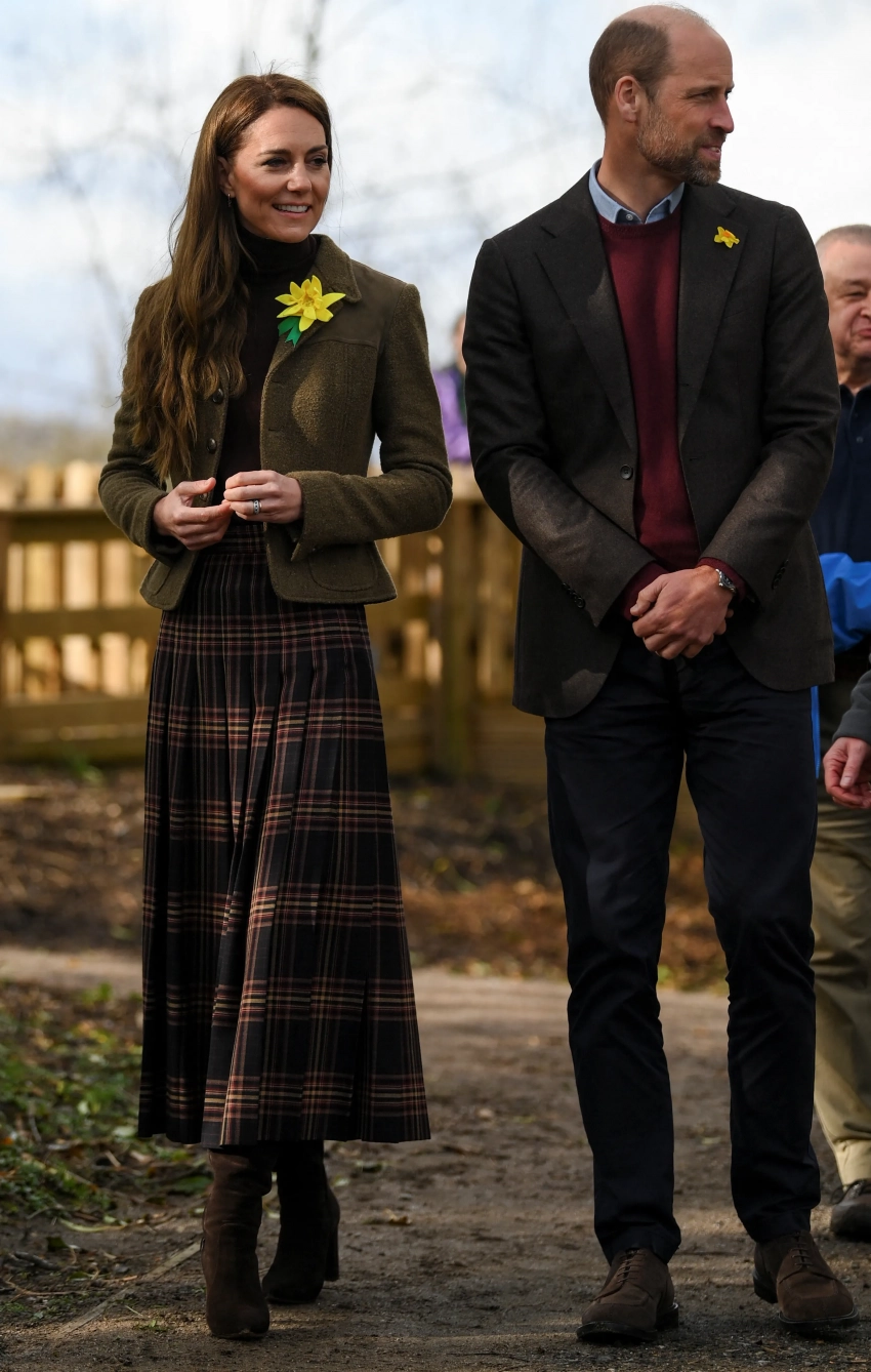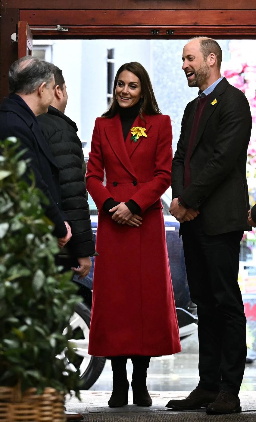 Кейт Миддлтон и принц Уильям/Фото: PrinceAndPrincessOfWales/Instagram*Для выхода Кейт, которая всё чаще появляется на публике, выбрала ярко-красное пальто Alexander McQueen в цвет флага Уэльса, дополнив его коричневой водолазкой и высокими замшевыми сапогами. Позже она сменила пальто на пиджак в оливковых тонах. На груди у неё был нарцисс, как и у принца Уильяма, который был одет в голубую рубашку, пиджак, бордовый джемпер, синие брюки и замшевые ботинки.