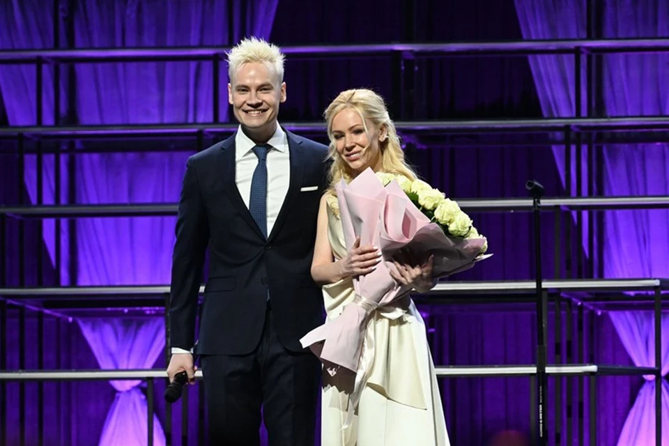 Он подарил букет белых роз появившейся на сцене Екатерине Мизулиной (глава Лиги безопасного интернета) и сказал: «Официально — мы встречаемся, мы пара». Зал стонал от восторга и кричал «Горько».