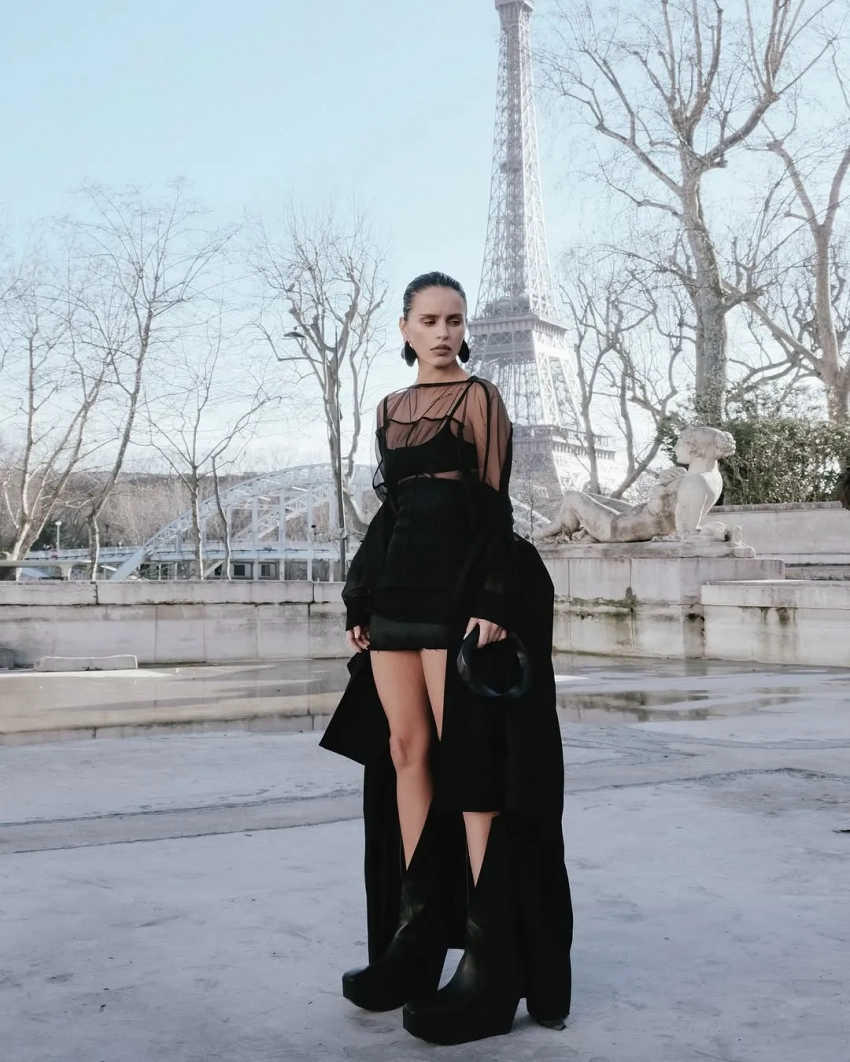 Первым онапосетила шоу Rick Owens: перед ним певица позировала в тотал-луке бренда и познакомилась с музой и супругой дизайнера Мишель Лами. Появление певицы на этом показе и в целом на Неделе моды в Париже вызвало микроскандал в российском телеграме: стилист Михаил Барышников (который любит учить жизни людей) посчитал, что певице не место на показе концептуального бренда, а её стилист Николай Овечкин встал на защиту подопечной. После этого обмена мнениями к дискуссии насчёт того, кто и куда имеет право ходить, подключились ведущие околосветские каналы телеграма.