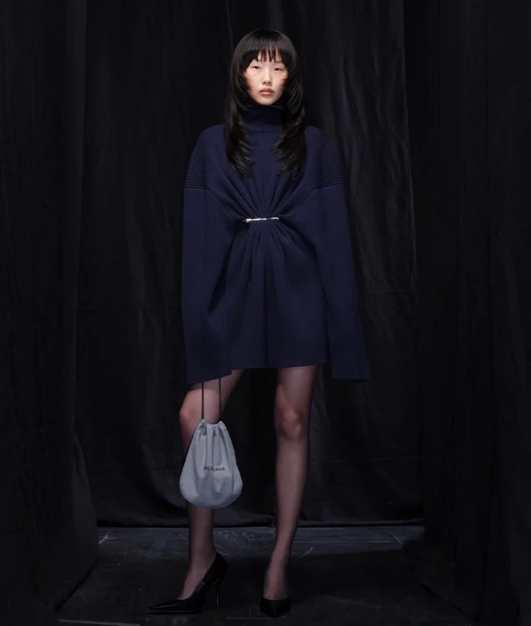 Начнем с одного из главных затейников мира моды Демны Гвасалии. Креативный директор Balenciaga зря времени не терял и представил новую версию сумки-мусорного мешка. Она тоже выглядит, как пакет, но более старый и мятый. Ее дизайнер предлагает носить с рубашкой, мятыми джинсами и ботинками с вытянутыми носами.