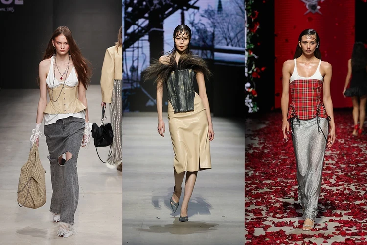 Женственные корсеты в этом сезоне мы носим с юбками макси, а также в качестве второго слоя. Сочетаем их с майками и с юбками из денима, создавая расслабленные образы в уличном стиле. Или же комбинируем с кожей, перьями и лодочками и отправляемся на вечеринку.