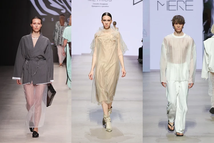 Воздушные прозрачные ткани — еще один мировой тренд, который подхватили российские дизайнеры. Сочетайте летящие юбки и платья с удлиненными жакетами, а лонгсливы — с бра или топами. Самые смелые могут комбинировать прозрачные туники и блузы с актуальными микрошортами.