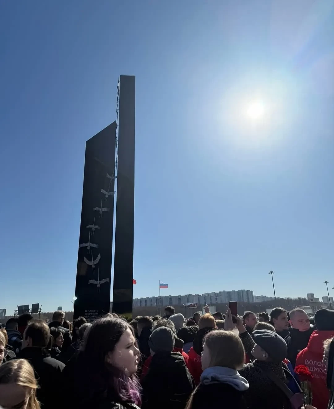 Сегодня, в годовщину трагедии, рядом с "Крокусом" открылся мемориал в память о жертвах теракта. Он представляет собой две стелы со скошенными верхними гранями с изображёнными на них летящими журавлями. На церемонии присутствовали президент Agalarov Development Эмин Агаларов и его отец, президент Crocus Group Араз Агаларов, который стал автором проекта монумента.