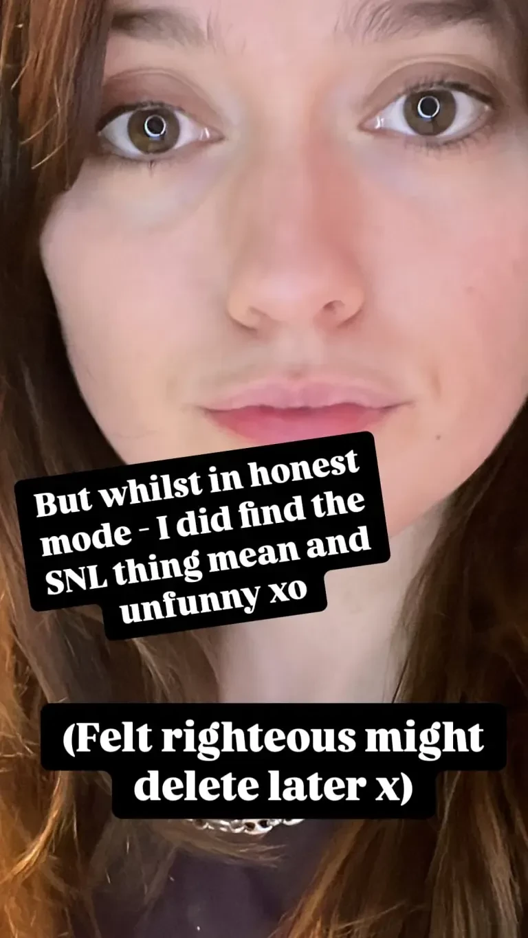 Сторис Эйми Лу ВудНа следующий день после публикаций в сети появились фотографии, на которых Вуд засняли в слезах во время прогулки в Южном Лондоне. Актриса находилась в компании коллеги Ральфа Дэвиса, с которым работает над новым проектом BBC. Снимки вызвали волну обсуждений в соцсетях — пользователи предположили, что причиной её расстройства стала жёсткая пародия. Многие выразили Эйми слова поддержки, в том числе известные личности, такие как Кара Делевинь и Джорджия Мэй Джаггер.