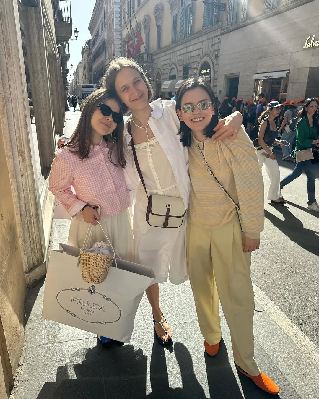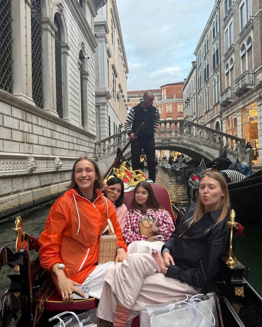 Соня Кромова, Лили Григалашвили, Есоль Ким, Ксения Китаева, Полина ЗеленоваЖурналистка назвала эту поездку одной из "самых красивых и весёлых": "Если бы вы знали, сколько раз в жизни я говорила: "Это была моя лучшая Италия!". И сейчас скажу это снова. Римско-флорентийские каникулы по случаю дня рождения Ксении — это было легендарно".