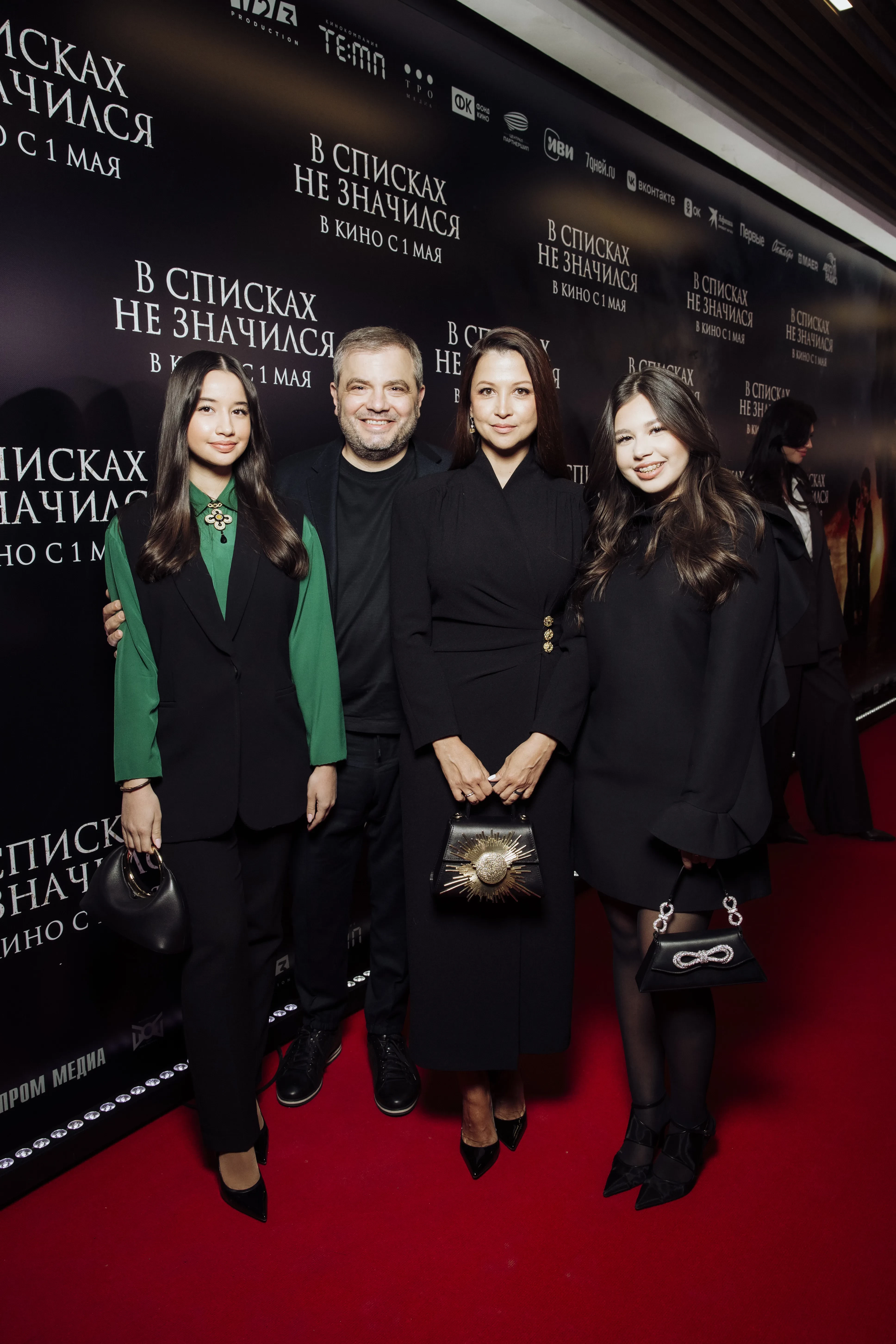 28 апреля в кинотеатре "Каро Октябрь" прошла премьера военной драмы "В списках не значился", приуроченная к 80-летию Великой Победы. Премьеру посетили Владимир Машков, который исполнил одну из главных ролей в картине, Ирина Винер, Николай Расторгуев, Саша Стоун, Тимур Вайнштейн и Яны Батыршина с дочерьми, Женя Малахова, топ-менеджер "Газпром-Медиа" Тина Канделаки и Артём Михалков, получивший недавно должность в холдинге.