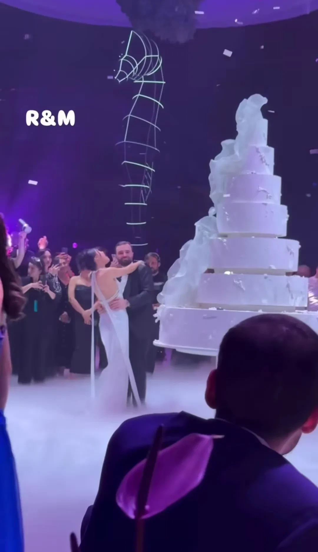 Для события молодожёны зарезервировали главную концертную площадку Еревана — спортивный комплекс имени Карена Демирчяна. Там для гостей устроили представление с участием известных танцевальных и музыкальных коллективов. Свои хиты исполнили Валерий Меладзе и Тата Симонян, а ведущими вечера стали Гарик Мартиросян и Назени Оганесян.