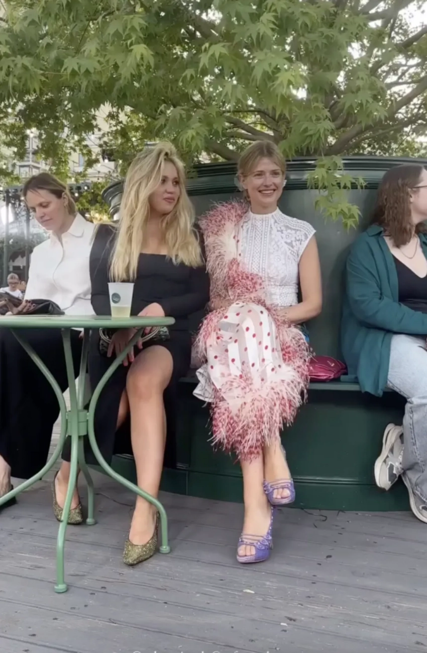 Софья Эрнст вышла в свет в боа с перьями и кружевном топе