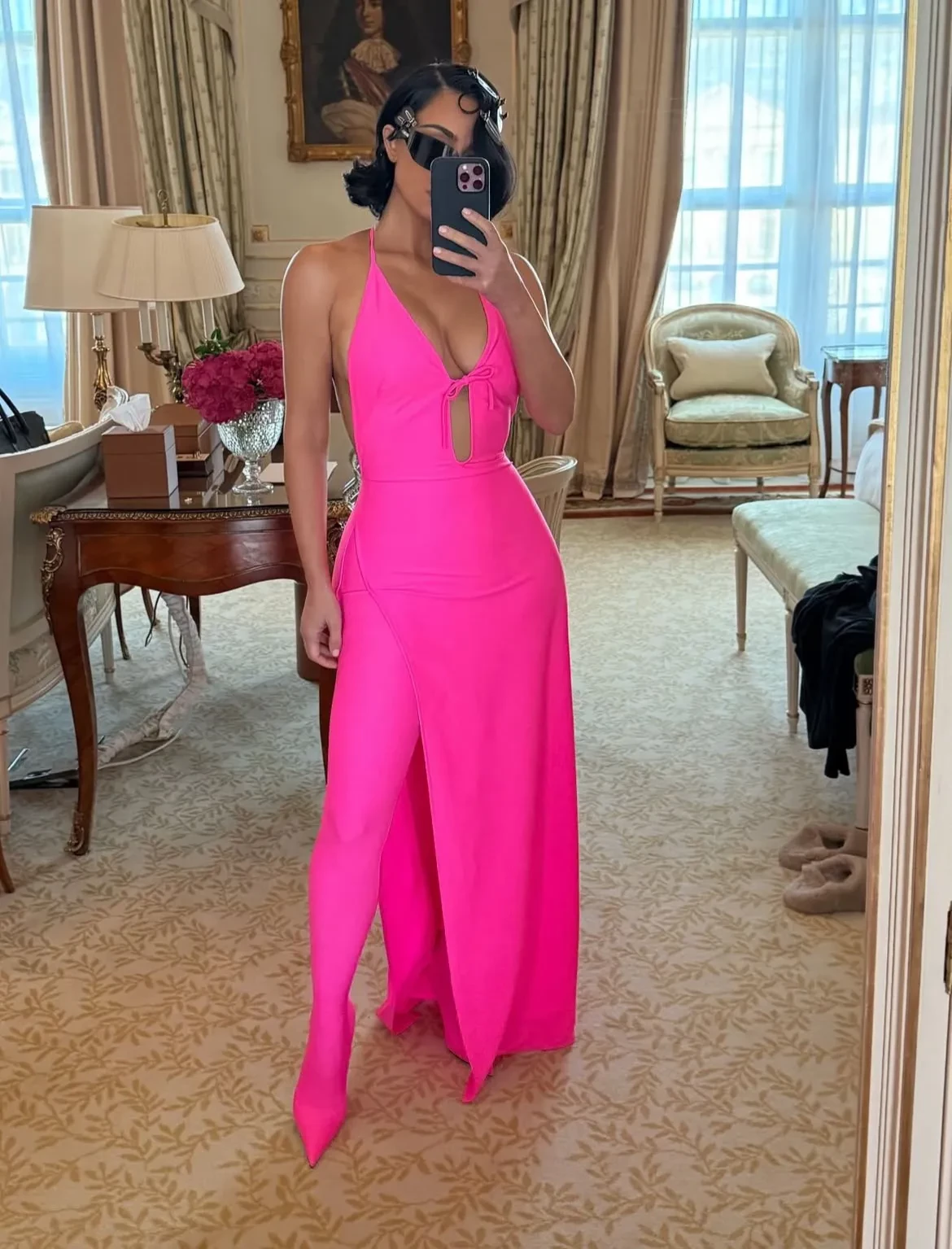 Ким Кардашьян прилетела в Париж на Неделю высокой моды в преддверии последнего показа Демны Гвасалии для Balenciaga. 44-летняя бизнесвумен появилась на публике в тотал-луке бренда цвета фуксии и дополнила образ укладкой в стиле "старого Голливуда" и солнцезащитными очками.