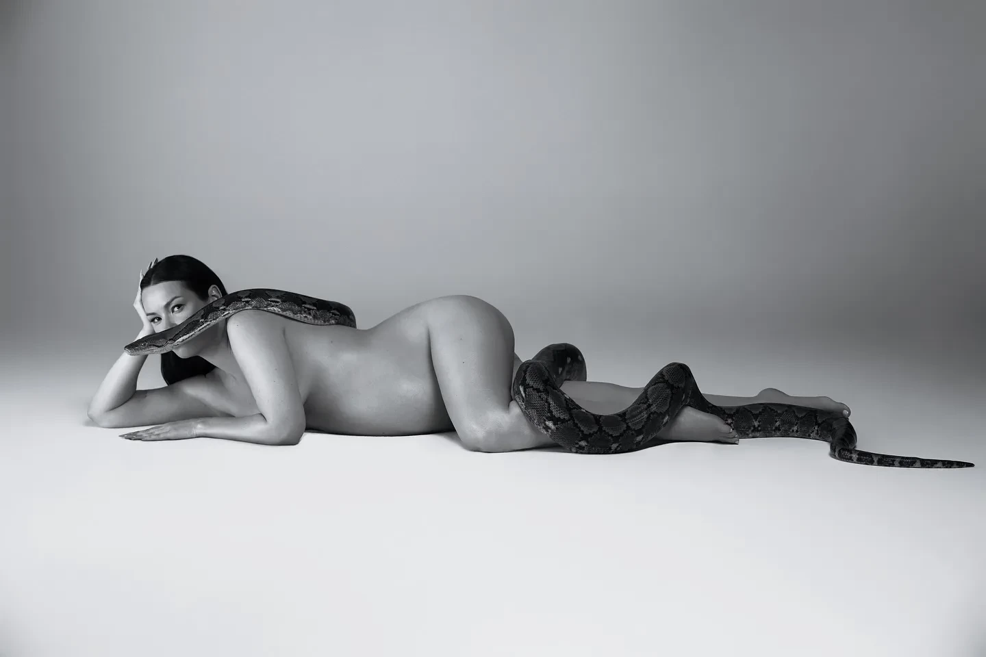 Референсом для съёмки послужил легендарный снимок Настасьи Кински с питоном, сделанный Ричардом Аведоном в 1981 году. Этот кадр стал культовым, разошёлся миллионными тиражами и украсил обложки таких журналов, как American Photographer Magazine и French Photo Magazine. Позже аналогичные фото делали самые красивые женщины в мире, включая Монику Беллуччи, Ирину Шейк и Девон Аоки.