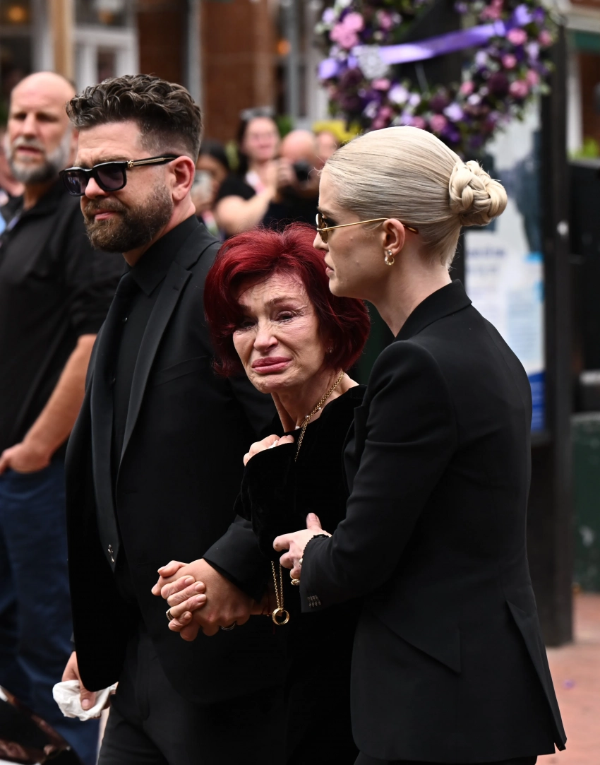 72-летняя Шэрон Осборн держала за руки 40-летнюю дочь Келли и 39-летнего сына Джека, направляясь к мосту Black Sabbath в Бирмингеме, где фанаты артиста создали мемориал. На прощании также была старшая непубличная дочь Оззи и Шэрон, 41-летняя Эми, возлюбленный Келли, 48-летний участник группы Slipknot Сид Уилсон с их сыном Сидом, и другие родственники.
