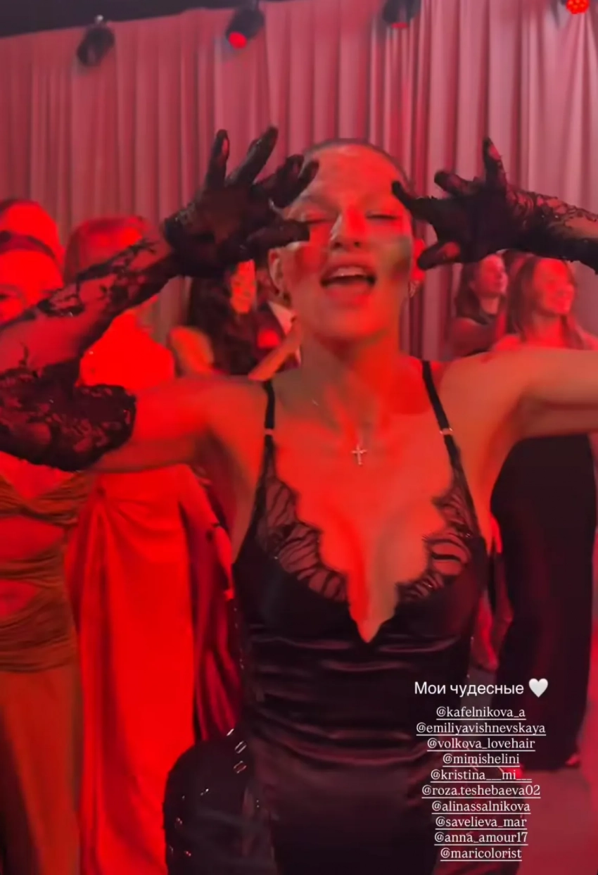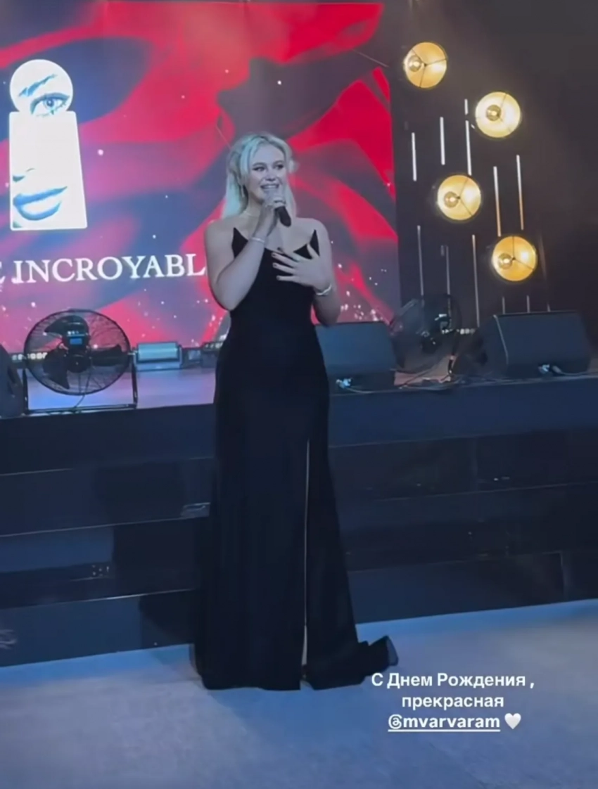 Гости праздника нарядились в вечерние платья: Алеся Кафельникова позировала в нуарном образе Ranevsky с декольте, а 27-летняя дочь пресс-секретаря президента России Дмитрия Пескова вышла в свет в платье в бельевом стиле. На вечеринке выступили группы "Иванушки International", 5sta Family и певица Нюша, а после Варвара зажгла свечи на праздничном популярном среди инфлюенсеров) торте.