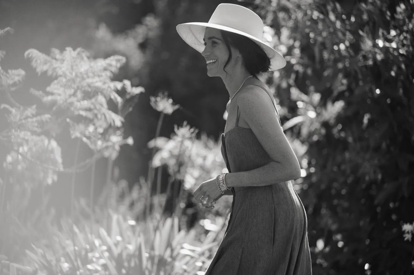 "Поздравляем женщину, стоящую за всем этим! Она вкладывает своё сердце, видение и магию в каждую деталь, и сегодня мы поднимаем бокалы за неё! С Днём Рождения нашу основательницу!", — гласит подпись под чёрно-белым снимком герцогини Сассекской, на котором она непринуждённо позирует в шляпке.