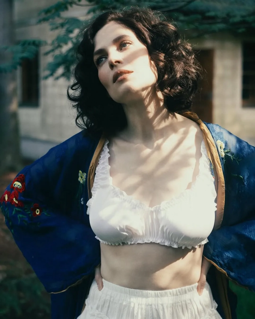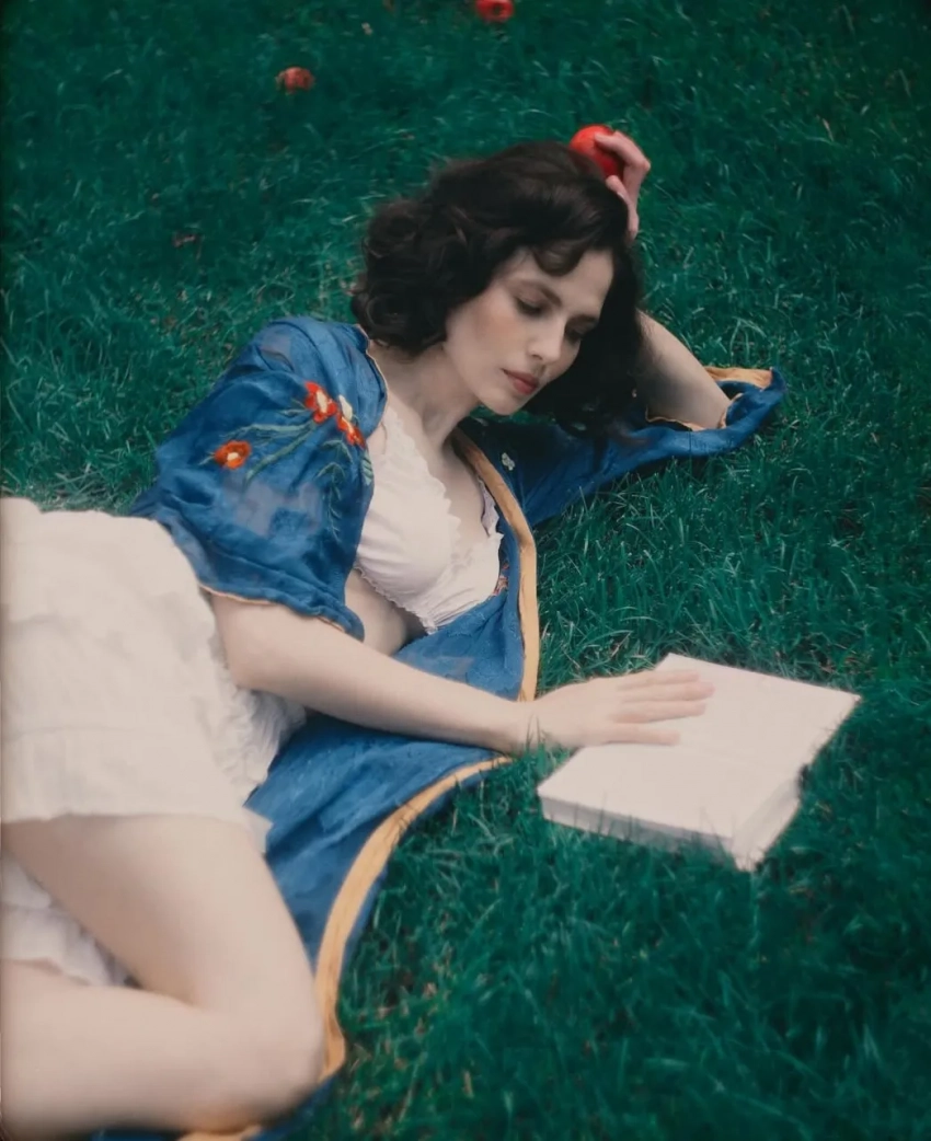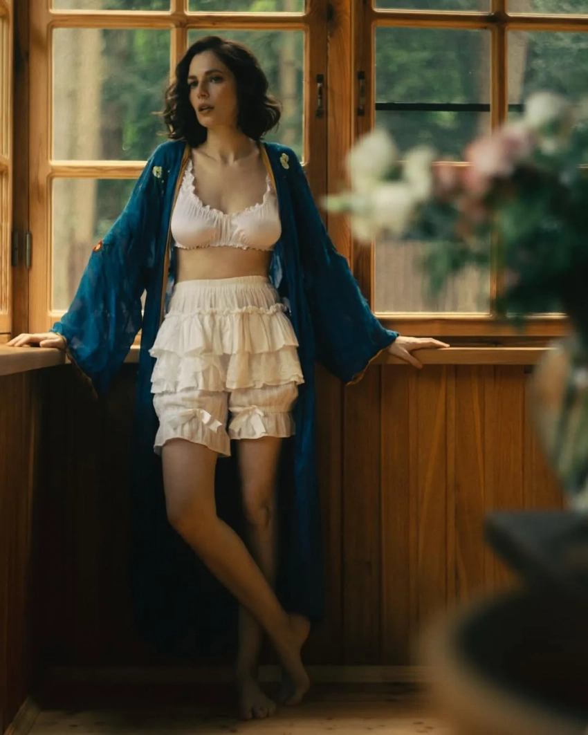 42-летняя Юлия Снигирь опубликовала в соцсетях снимки из новой фотосессии. На фотографиях актриса и супруга Евгения Цыганова позирует в образе "Белоснежки" в белом нижнем белье в ретро-стиле и синем халате.