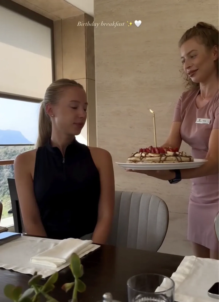 Анастасия собралась вместе с гостями на праздничном завтраке в отеле, в котором остановилась семья, и задула свечу на торте. Рядом с именинницей сидел её отец, фото которого в сети появляются крайне редко.