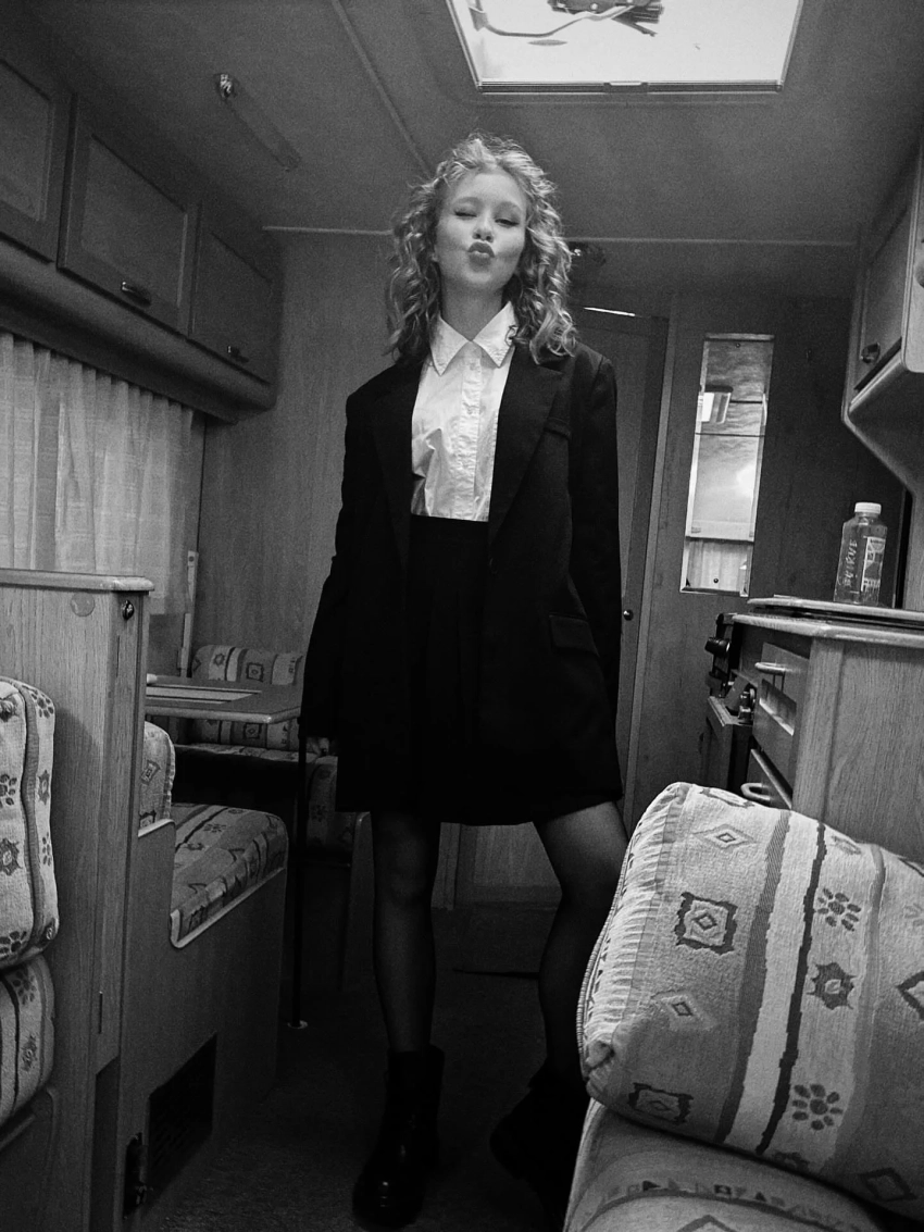 На снимках Анна запечатлена в гримёрках, а также в нескольких образах. Например, в роли девочки-альбиноса из фильма "Тибра" или в её знаменитом образе Айгуль из сериала "Слово пацана". "С днём Российского кино! Это моя первая любовь, моя душа, мои первые необъяснимо прекрасные чувства. Безгранично люблю", — подписала фото 16-летняя Пересильд.