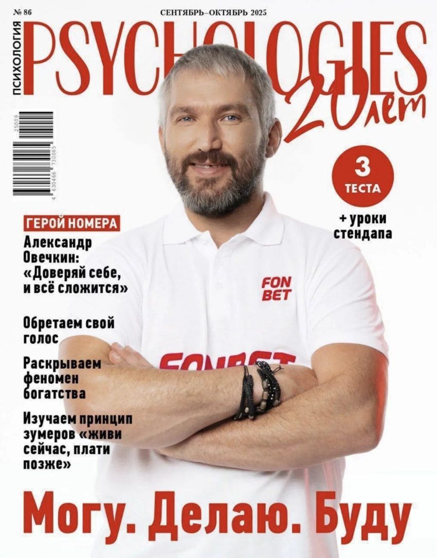 В "Мнении редакции" хоккеиста снял Алеко, со своим стайлингом и резким чёрно-белым портретом. "Чтиво" сделало ставку на улыбку и слово "рекорды". Psychologies показал спортсмена в белой футболке с логотипом букмекерской конторы Fonbet и мотивационным лозунгом "Могу. Делаю. Буду".