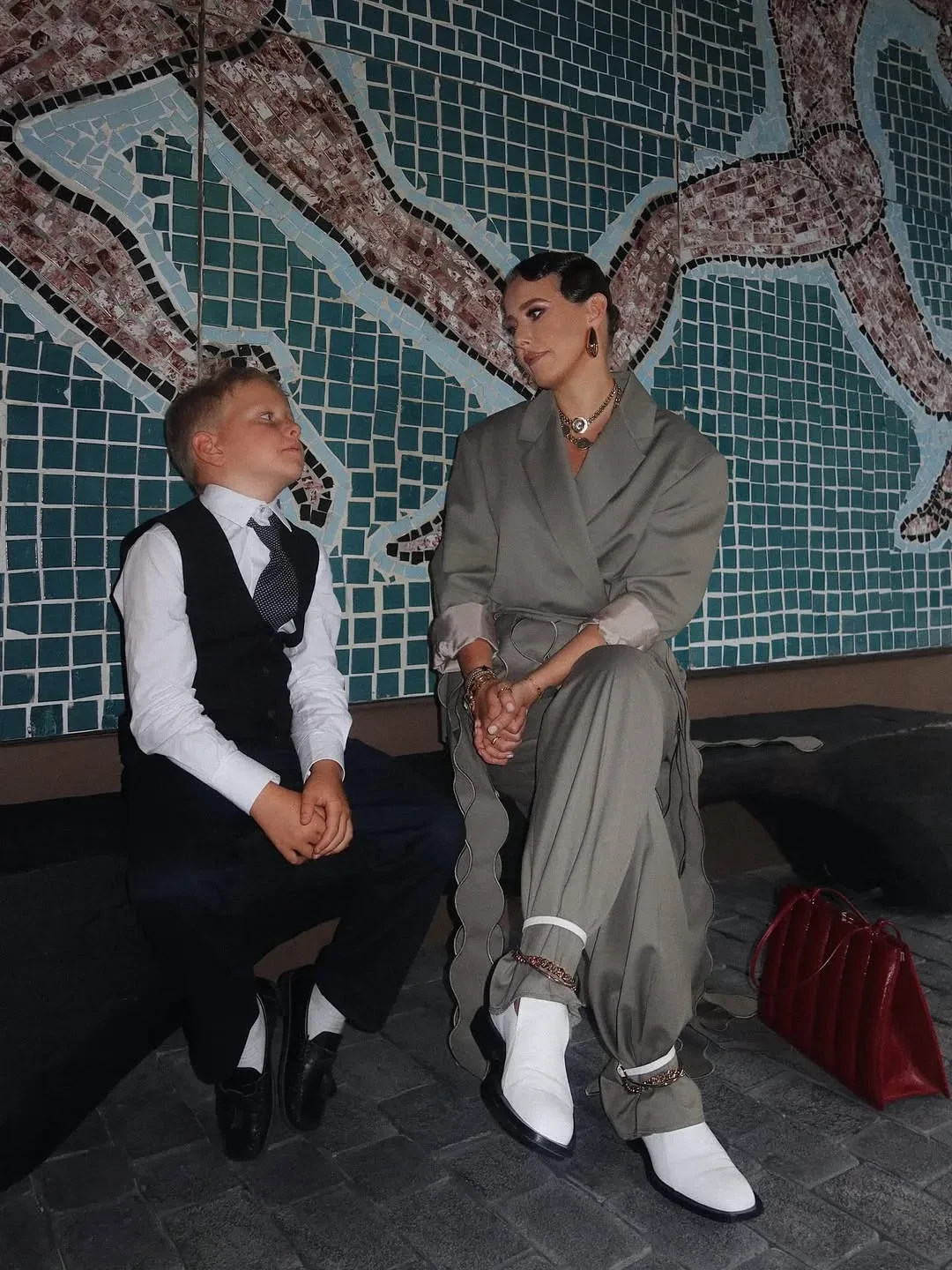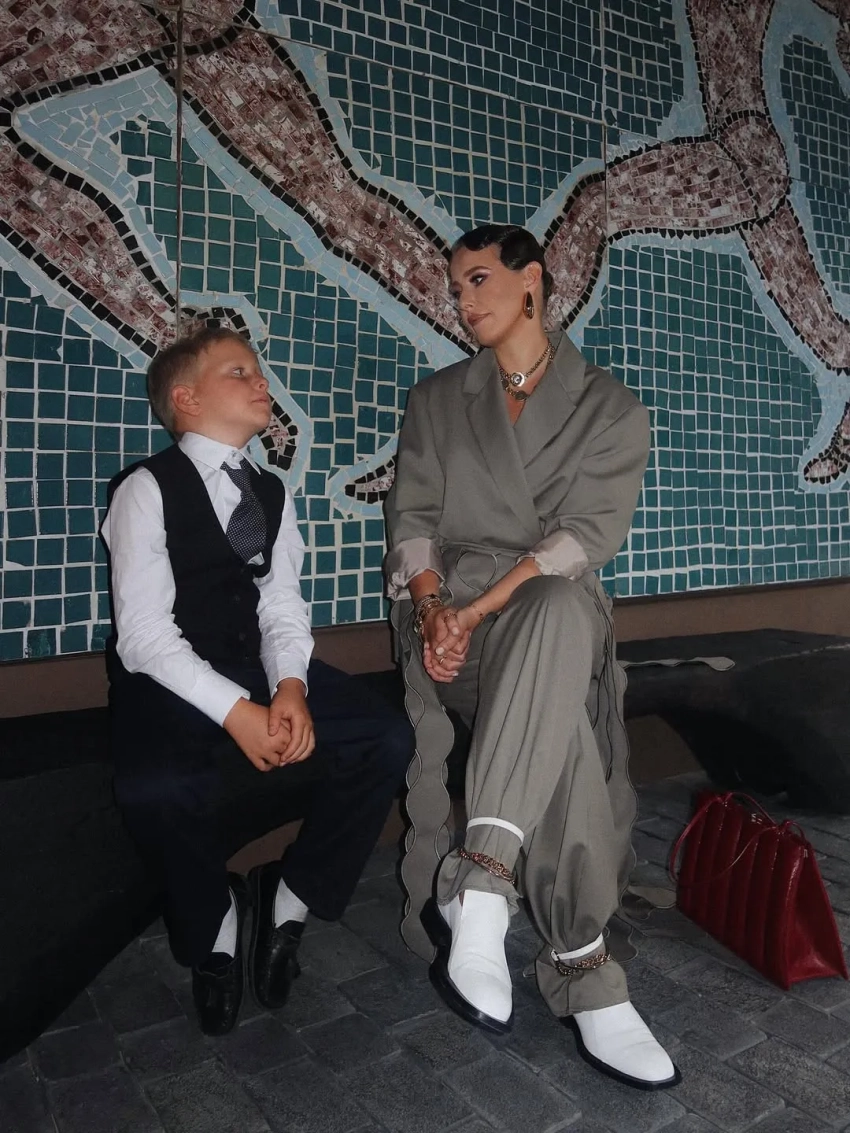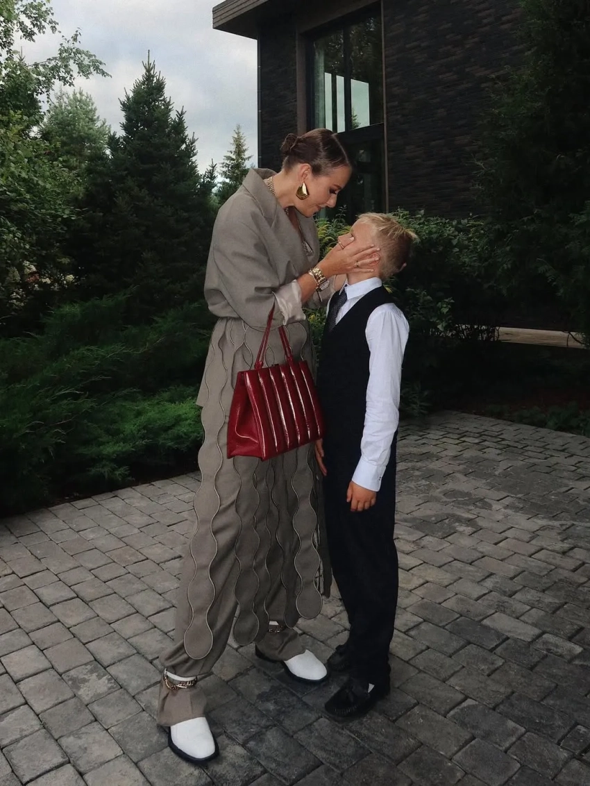 "Второе первое сентября прошло менее жизнерадостно, чем первое — ребёнок пошёл в школу с чётким осознанием, что следующие каникулы не скоро. 0% осуждения, 100% понимания", — подписала Ксения совместные фото с восьмилетним Платоном. На фото Собчак позирует в сером костюме Ruban, в котором после линейки отправилась на показ бренда.