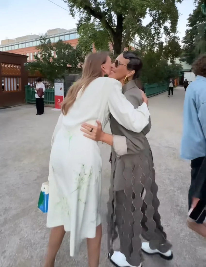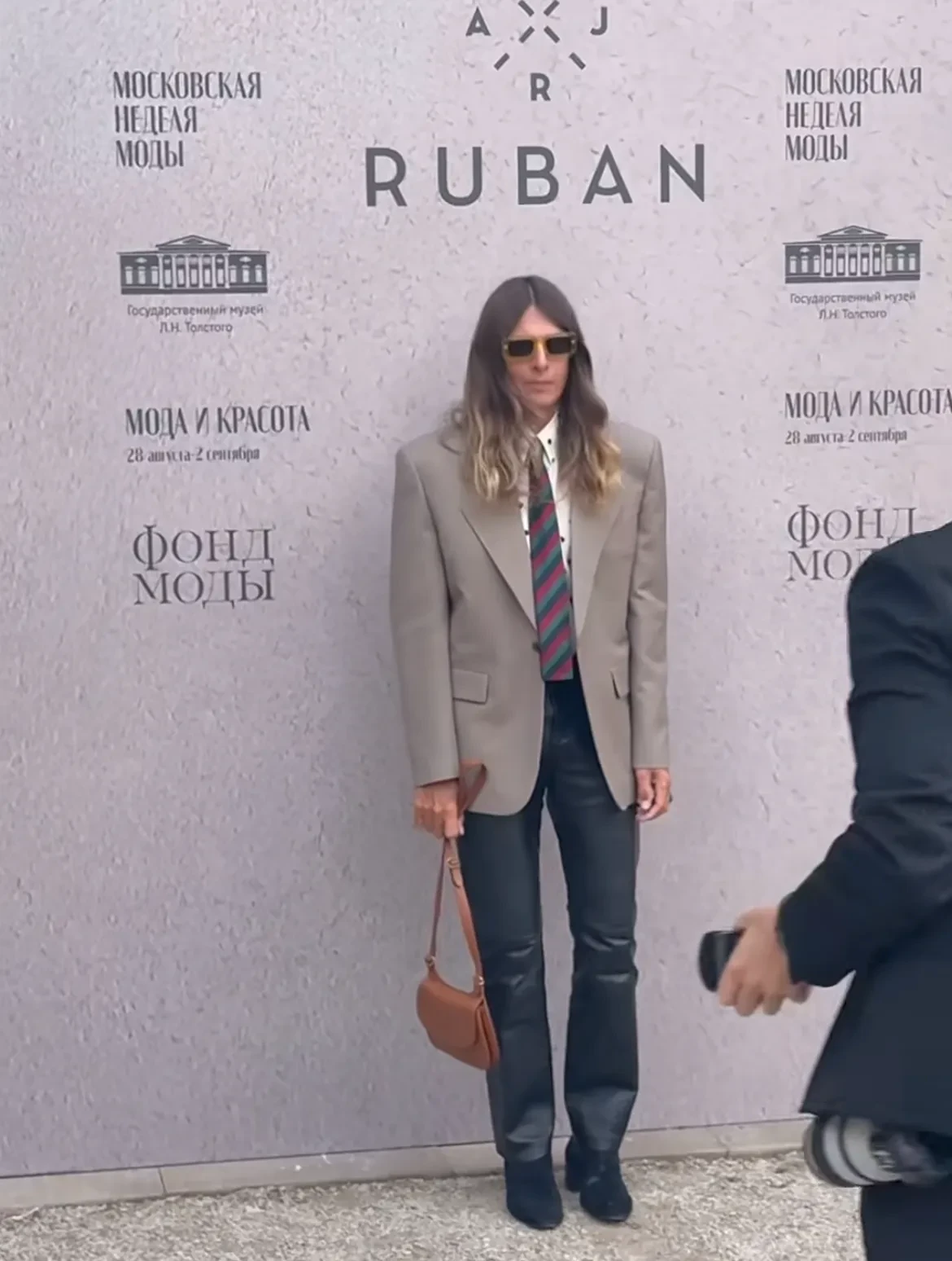 43-летняя Ксения Собчак приехала на показ сразу после линейки сына Платона. Ведущая надела костюм Ruban, который дополнила сумкой Phoebe Philo, колье Bvlgari, обувью Jil Sander и серьгами Bottega Veneta. Перед шоу Ксения встретила Светлану Бондарчук и сделала комплимент её винтажному платью Miu Miu.