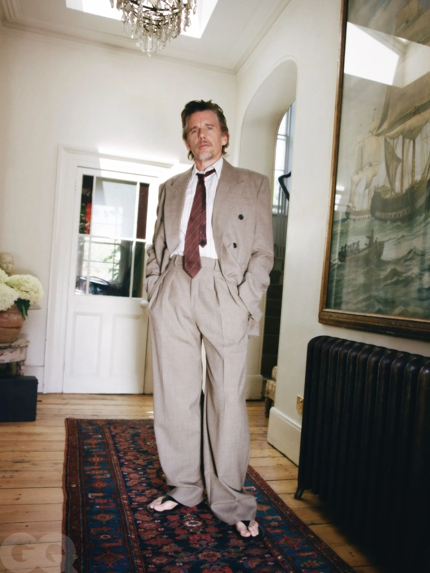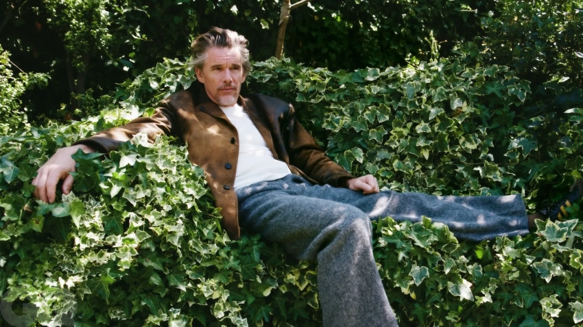 Итан Хоук снялся для нового номера GQ и рассказал о разводе с Умой Турман и их общих детях. Актёр позировал в объективе фотографа Брэндона Фримана. На снимках 54-летний Хоук предстал сразу в нескольких образах: в куртке и штанах бренда Miu Miu, винтажной майке, а также бежевом костюме Saint Laurent.
