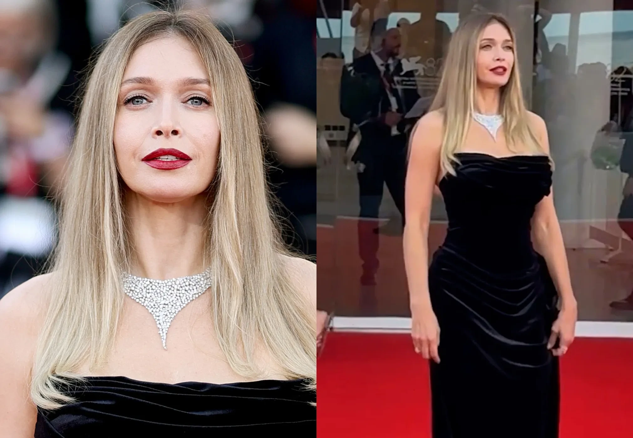 Венеция-2025: Вера Брежнева вышла на красную дорожку в бархатном платье