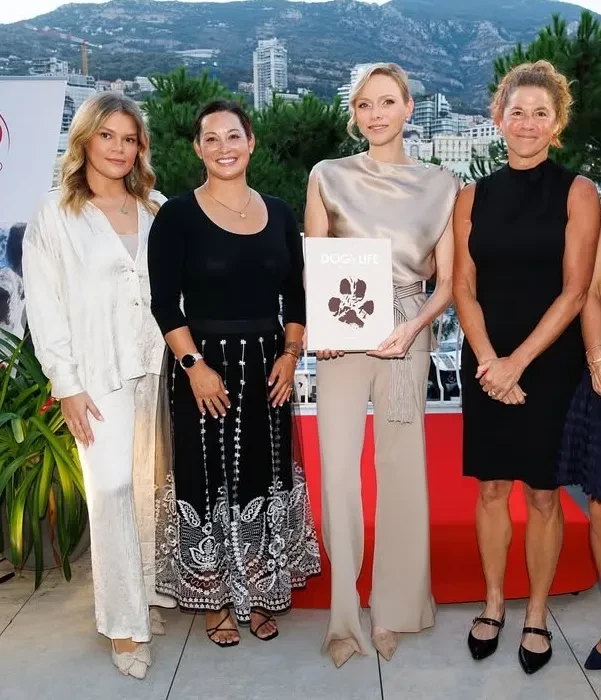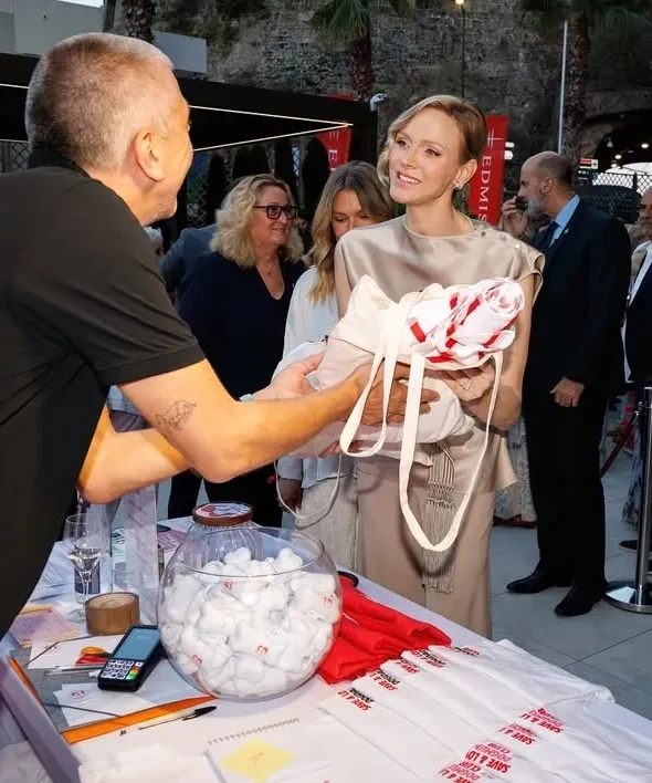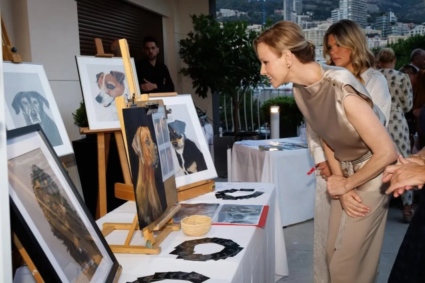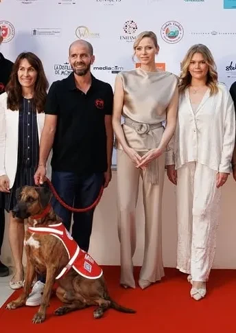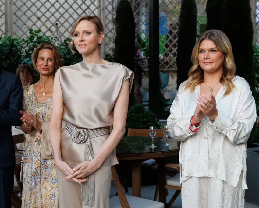 Княгиня Шарлен вышла в свет в костюме из шёлка