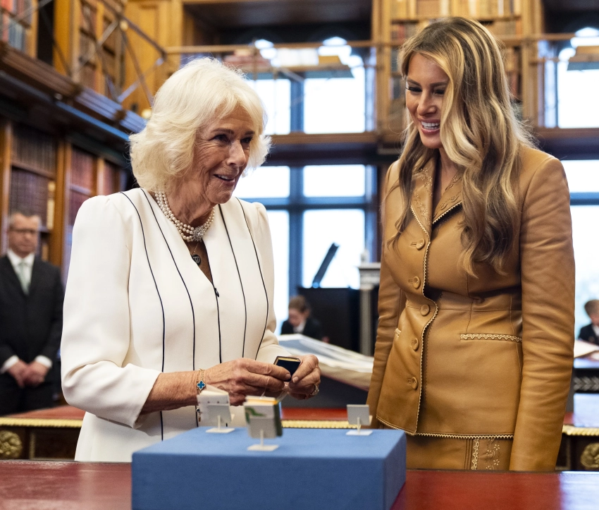 Кейт Миддлтон и Мелания ТрампКейт МиддлтонКейт Миддлтон и Мелания ТрампКейт Миддлтон и Мелания ТрампКейт Миддлтон, Мелания Трамп, Дуэйн ФилдсМелания ТрампКейт МиддлтонПосле Мелания переоделась в костюм из коричневой кожи и встретилась с 78-летней королевой Камиллой в королевской библиотеке. Её супруг Дональд Трамп тем временем находился на встрече с премьер-министром Великобритании Киром Стармером и его женой Викторией.