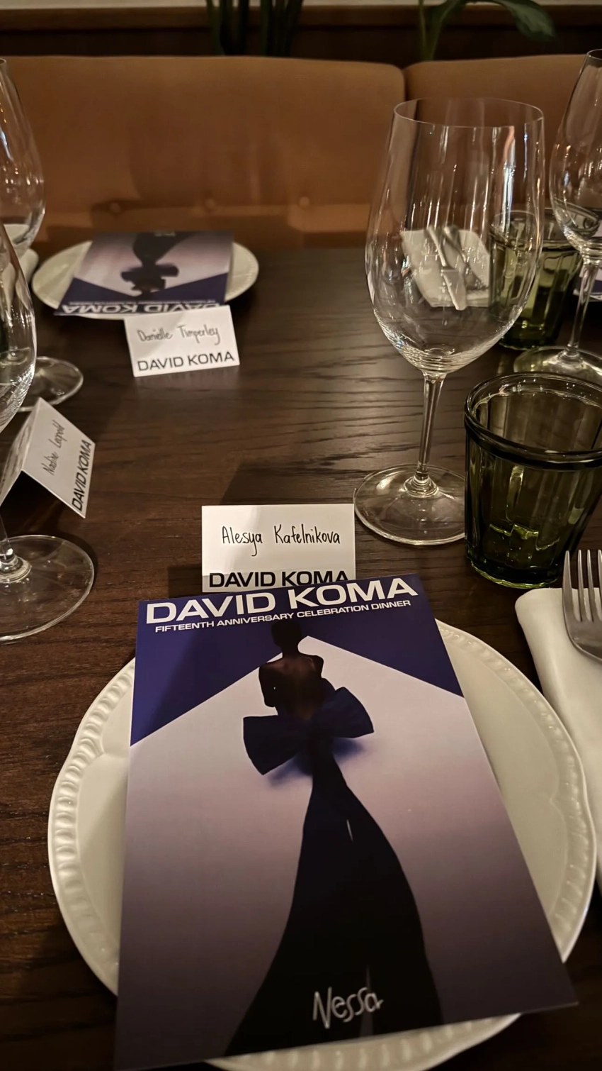 В Лондоне в рамках Недели моды прошёл светский ужин в честь 15-летия бренда David Koma. Основатель марки, грузинский дизайнер Давид Комахидзе, собрал гостей в ресторане Nessa, а среди приглашённых была Алеся Кафельникова.