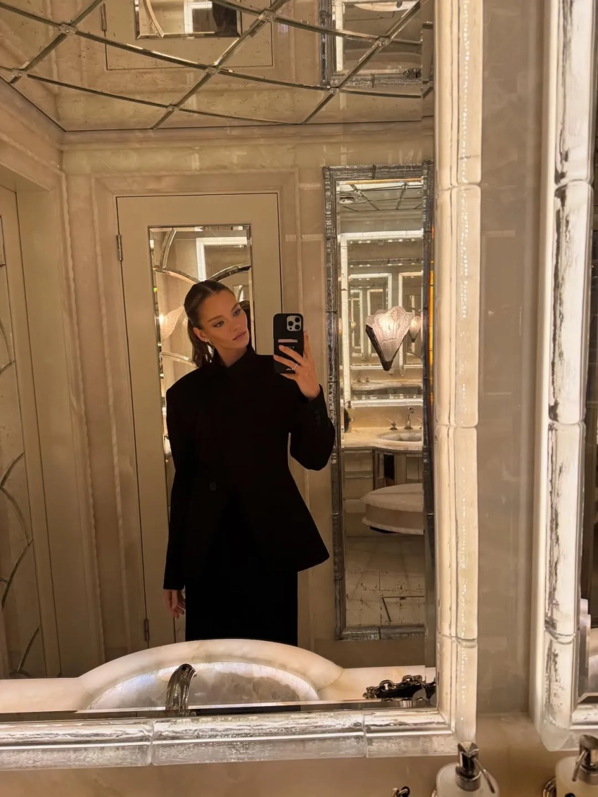 26-летняя российская модель пришла на ужин в чёрном платье с декором и бантами в горох, а также в длинных перчатках в тон. Образ Алеси дополнила укладка с убранными волосами, с которой она ранее дефилировала на подиуме на показе Richard Quinn.