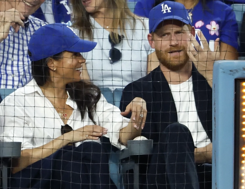 44-летняя Меган Маркл пришла на игру в белой рубашке и чёрных джинсах, а 41-летний Гарри надел белую футболку с чёрным пиджаком. Супруги надели также одинаковые кепки в цветах команды Los Angeles Dodgers, за которую они болели.