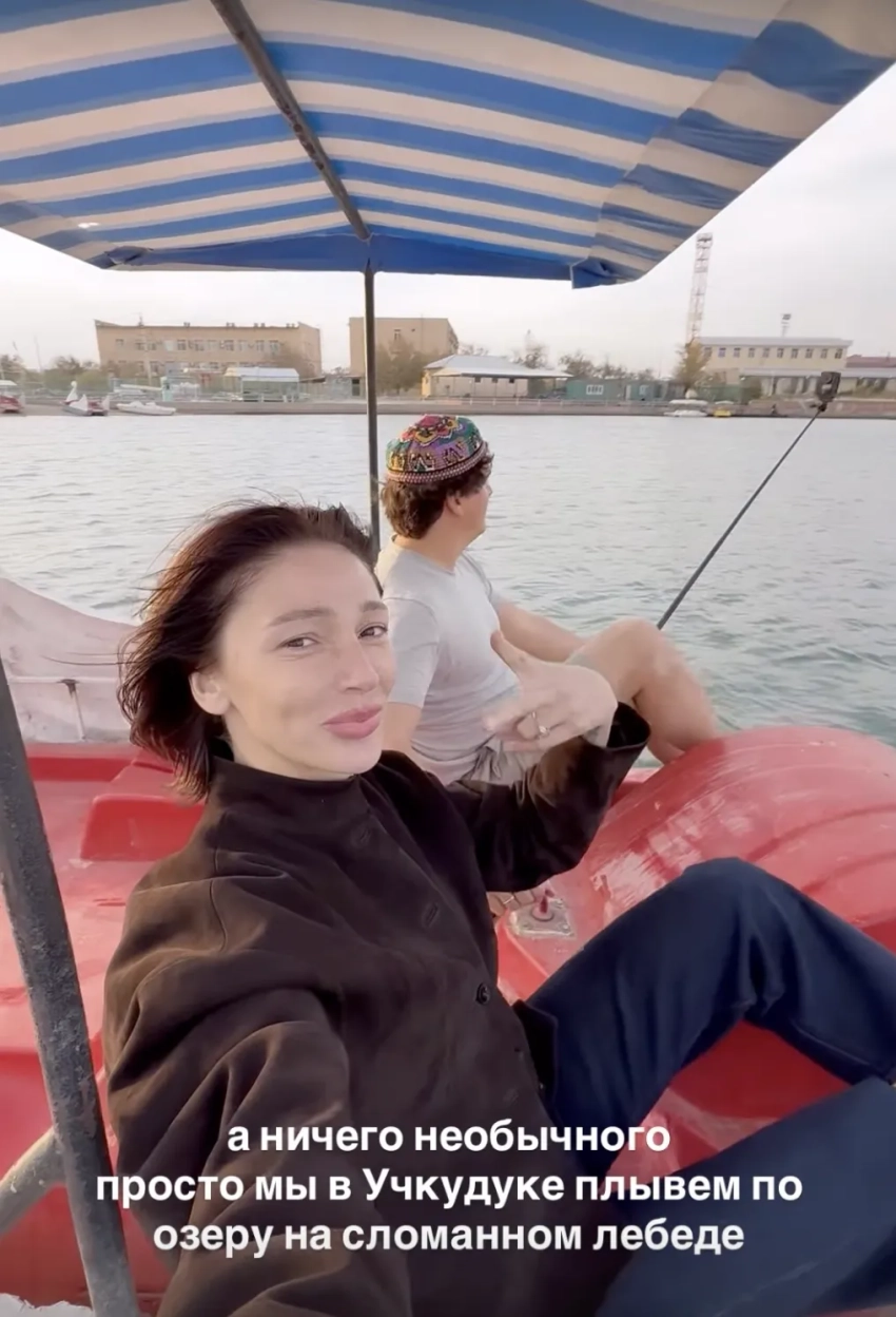 Бывшая ведущая "Орла и решки" с мужем ранее отдохнули в известном городе Узбекистана Самарканде, а после отправились осматривать достопримечательности Учкудука. "Мы в Учкудуке. Ну типа Учкудук — три колодца", — напомнила Настя о легендарной песне. Там пара отправилась кататься на катамаране, который сломался посередине озера, и супругам пришлось ждать помощи.