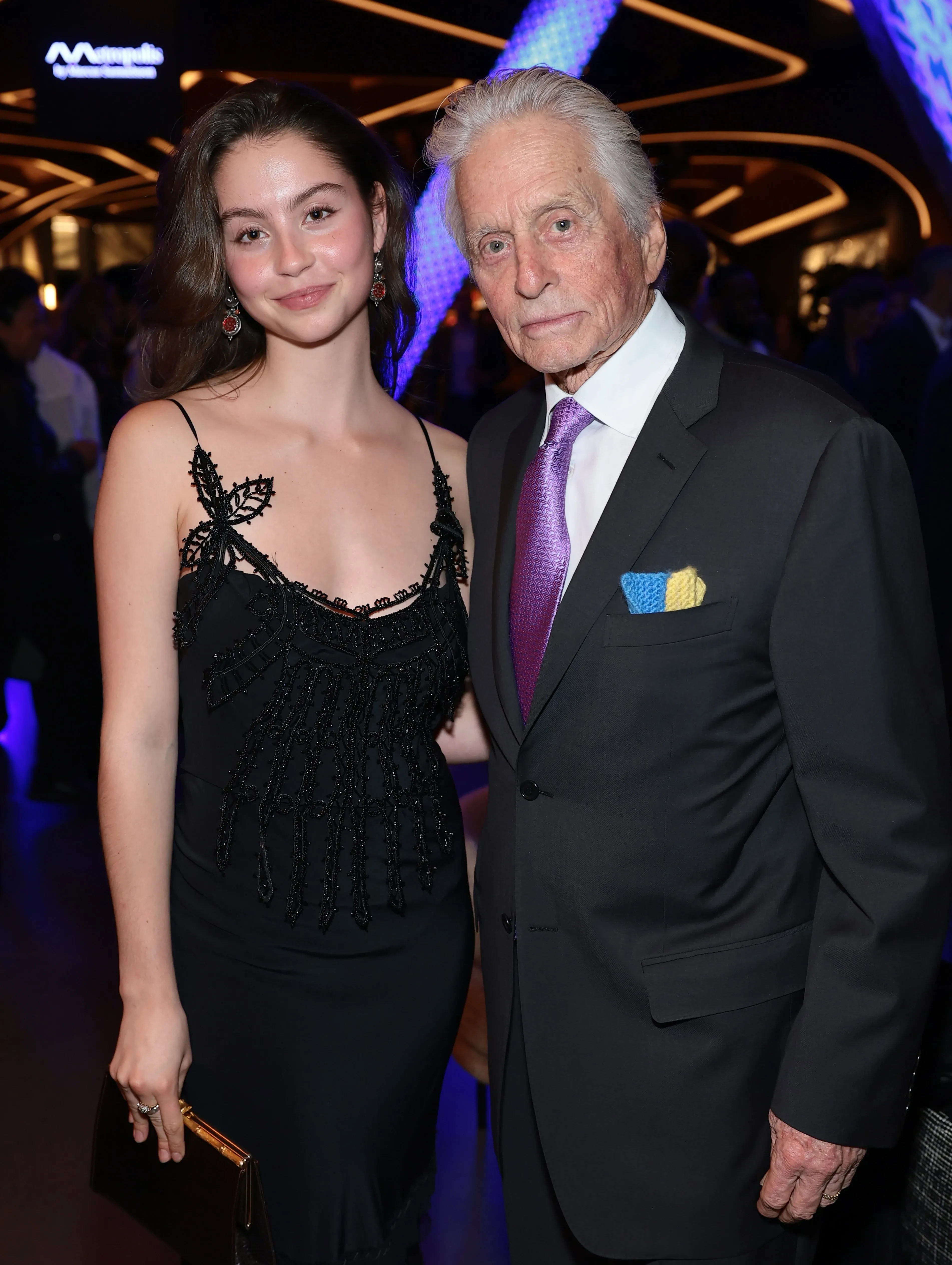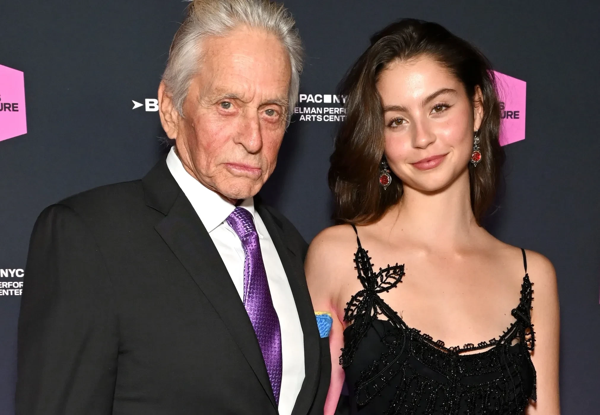 22-летняя дочь Майкла Дугласа и Кэтрин Зеты-Джонс вышла в свет с отцом — в винтажном платье своей матери