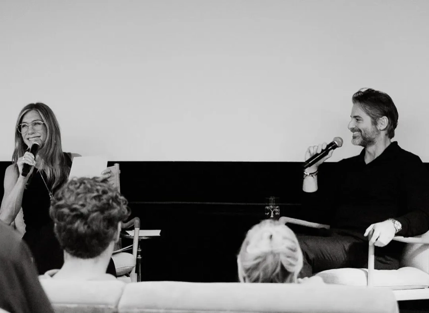 На чёрно-белых снимках Энистон и Кёртис обнимаются и выступают перед гостями. "Если это сон, я не хочу просыпаться", — подписал он публикацию, добавив эмодзи сердца.
