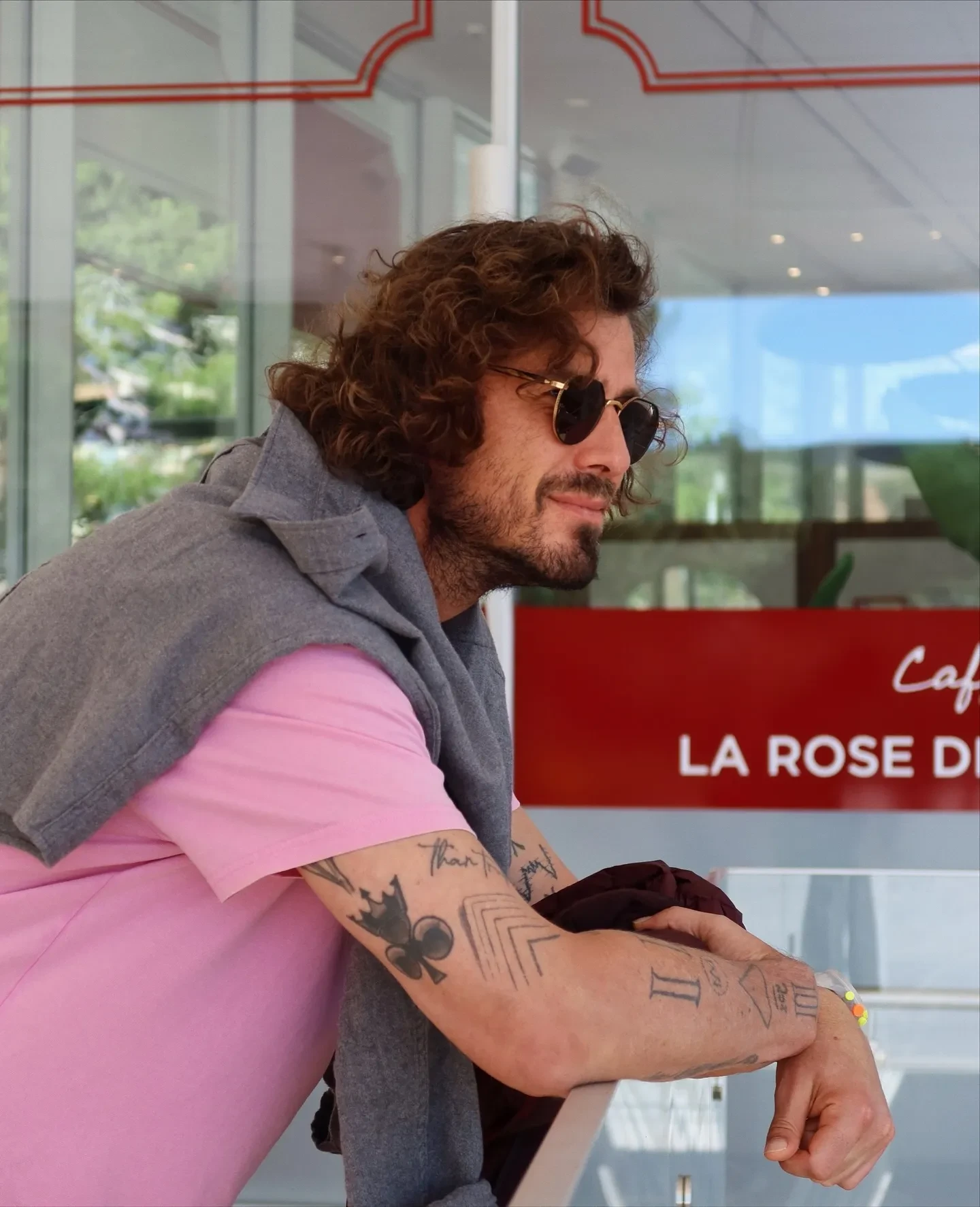 На фото 45-летний спортсмен позирует за столиками в кафе и в парке. Для прогулки в этот день Сафин выбрал розовую футболку и тёмные спортивные брюки, дополнив образ серым джемпером и солнцезащитными очками. "Марата много не бывает. Пришлось даже подняться на ступеньки, чтобы сделать селфи. P.S. Мистер Сафин моими глазами", — подписала публикацию Хашба.