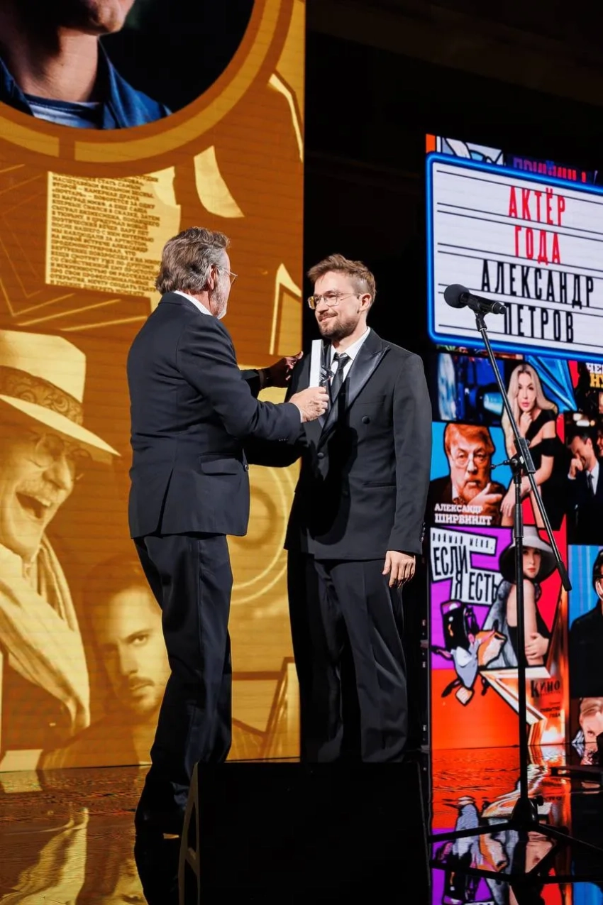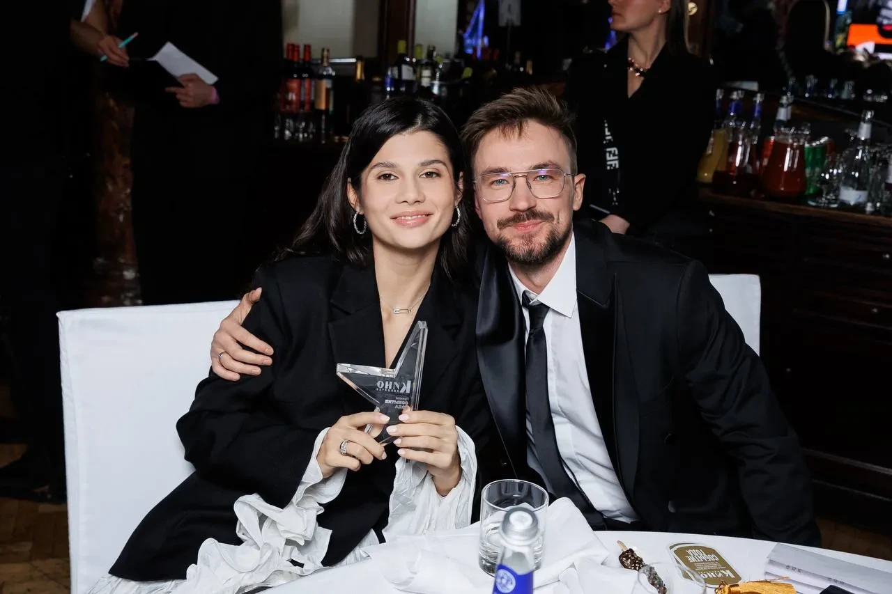 На дорожке 24-летняя Виктория позировала в белом мини-платье и чёрном жакете, а Александр надел классический костюм с галстуком. Во время церемонии Петров получил награду в номинации "Актёр года" и выступил с речью, поблагодарив организаторов.