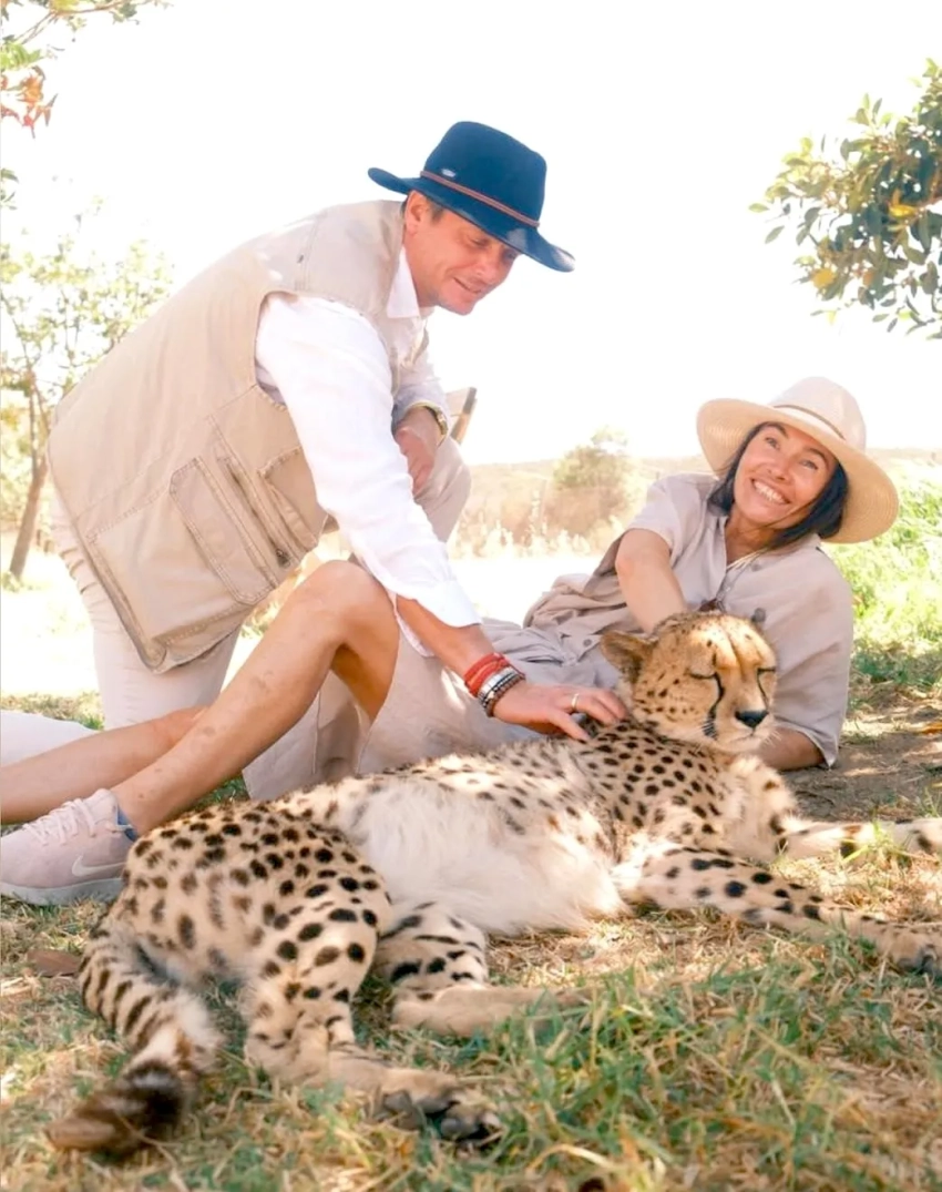 На снимке писательница и популярная в нулевых светская львица позирует с мужем и леопардом в заповеднике в Кейптауне. В другой день своего путешествия пара отправилась на прогулку по местному винограднику.