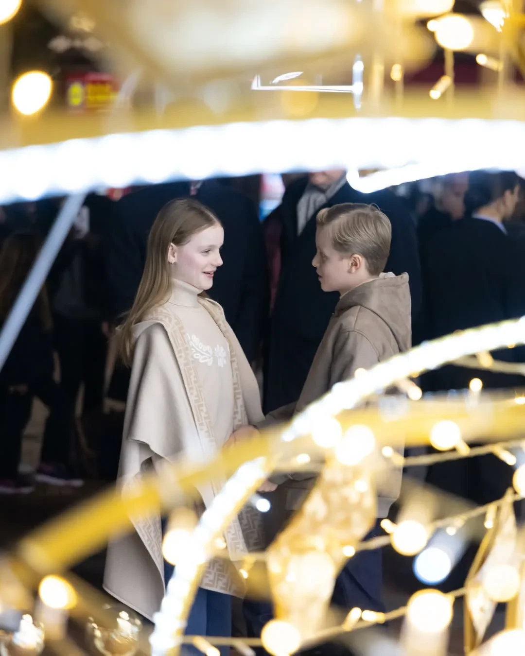 47-летняя Шарлен появилась на мероприятии в пальто в гусиную лапку, дополнив образ кожаной обувью и перчатками. 10-летняя принцесса Габриэлла позировала в накидке Fendi, а её брат-близнец, наследный принц Жак, — в толстовке Armani. Дети нажали на кнопку, включив иллюминацию по всему княжеству, что означает официальное начало праздничного сезона в Монако и сопутствующих ему мероприятий.
