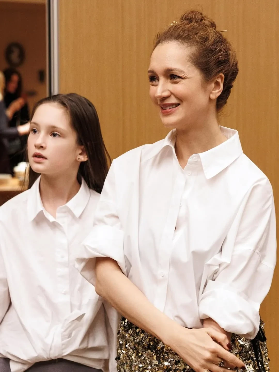 На снимках Исакова запечатлена вместе с дочерью во время мероприятия, организованного косметической компанией. На одном фото Варвара что-то шепчет матери на ухо, а её лицо скрыто, но уже на другом — и мать, и дочь смотрят вперёд. "Варя сопровождала, даже не совсем скучала, даже не сердилась, хотя ей это пока не интересно. И даже фотографировалась со мной", — подписала 49-летняя актриса пост.