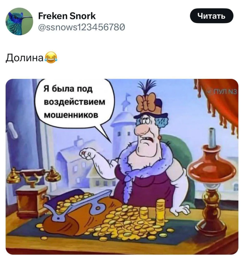 Скриншот ХСкриншот Х"Всю жизнь пела. А останется в памяти людей не как певица, а как глупая тётка, которую развели мошенники, а в итоге у нормальных людей отжали квартиру, честно купленную! Так себе "достижение", — констатируют в телеграм-канале "Шо, опять?".