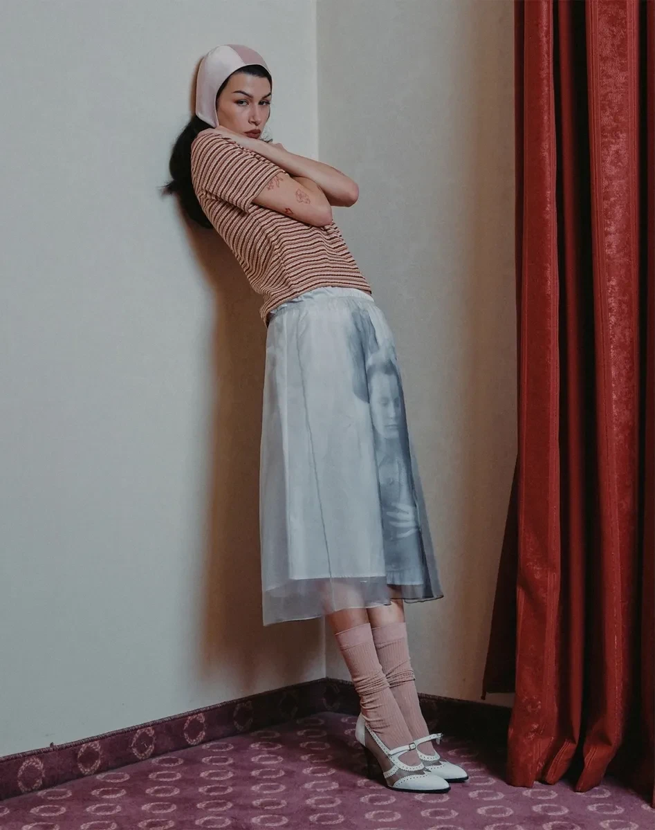 Эрика Кикнадзе примерила вещи из новой коллекции Sanchy — After Midnight. Стилизовал съёмку Ибрагим Гатциев — стилист и сооснователь российского бренда одежды Planta Rosa, для которого совсем недавно снялась Кикандзе и который Гатциев покинул этим летом из-за разногласий с коллегой Евгенией Павлин.