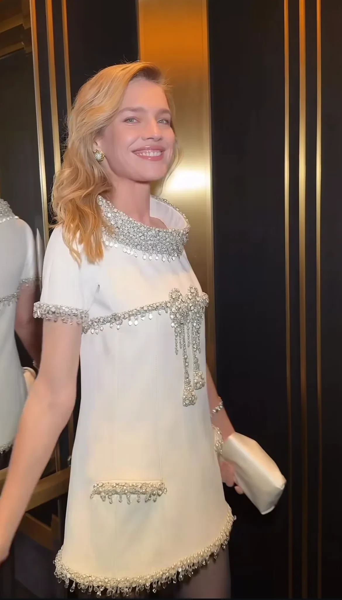 43-летняя Наталья Водянова появилась на мероприятии в кутюрном платье армянского бренда Krikor Jabotian, а образ дополнили туфли Manolo Blahnik и архивные украшения Tiffany & Co.